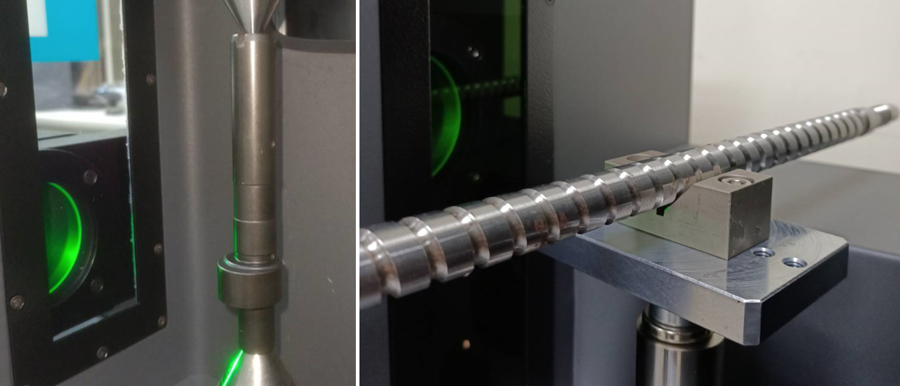 許多大量生產的圓柱形工業製品(例如:軸轉接器、鋼瓶和層盤),需要針對半成品或成品,設計專用量測系統來做產品全檢。因為這一類的產品往往具有較大的外徑,檢測時必須使用較大影像範圍的遠心光學系統,以便快速完成所有指定尺寸的檢查。